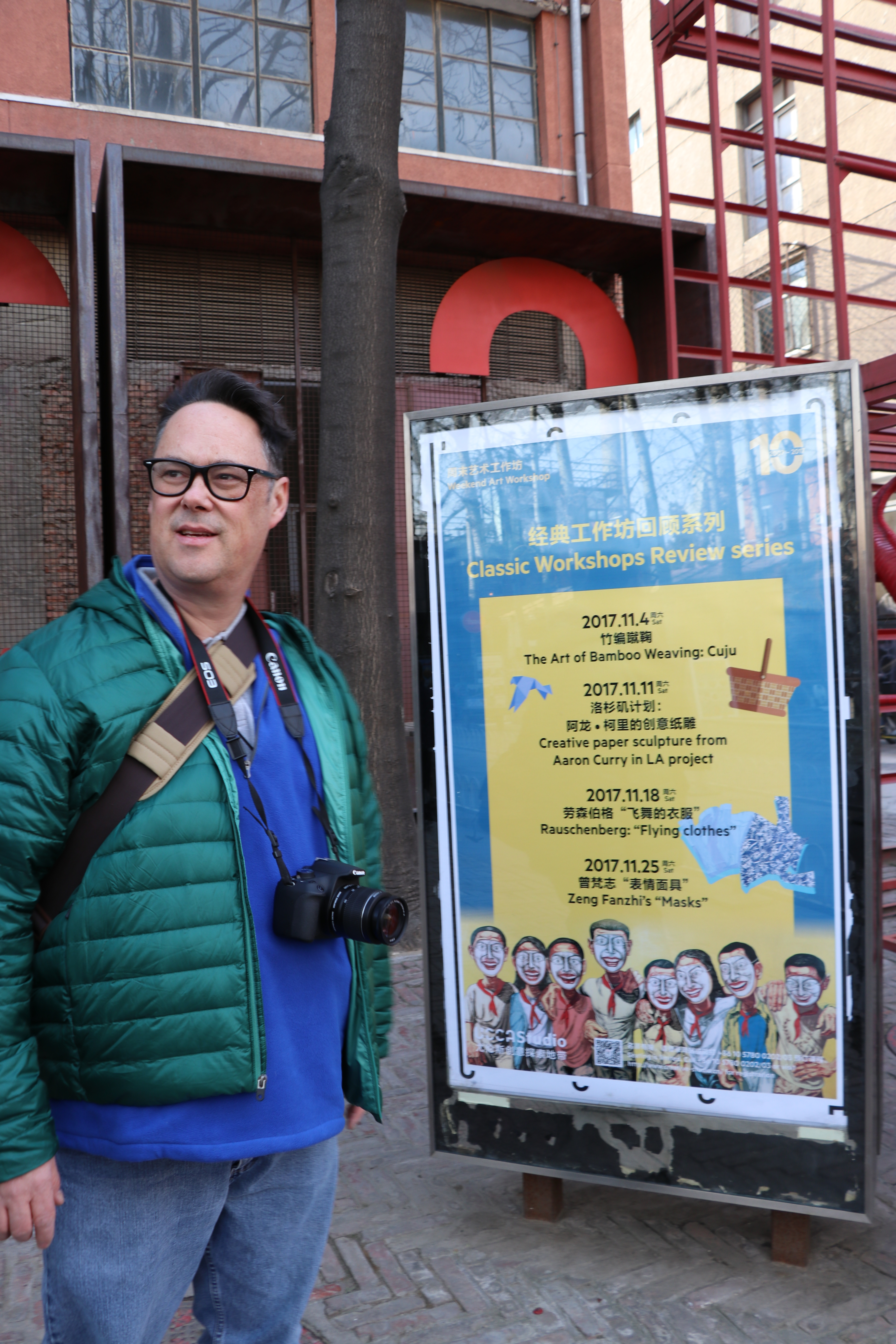 I do not know what I was looking at when Jon took this picture of me, but it shows the sign for the “classic workshops” at UUCA, including the workshop on bamboo basketry. December 9, 2017. Photograph by Jon Kay.