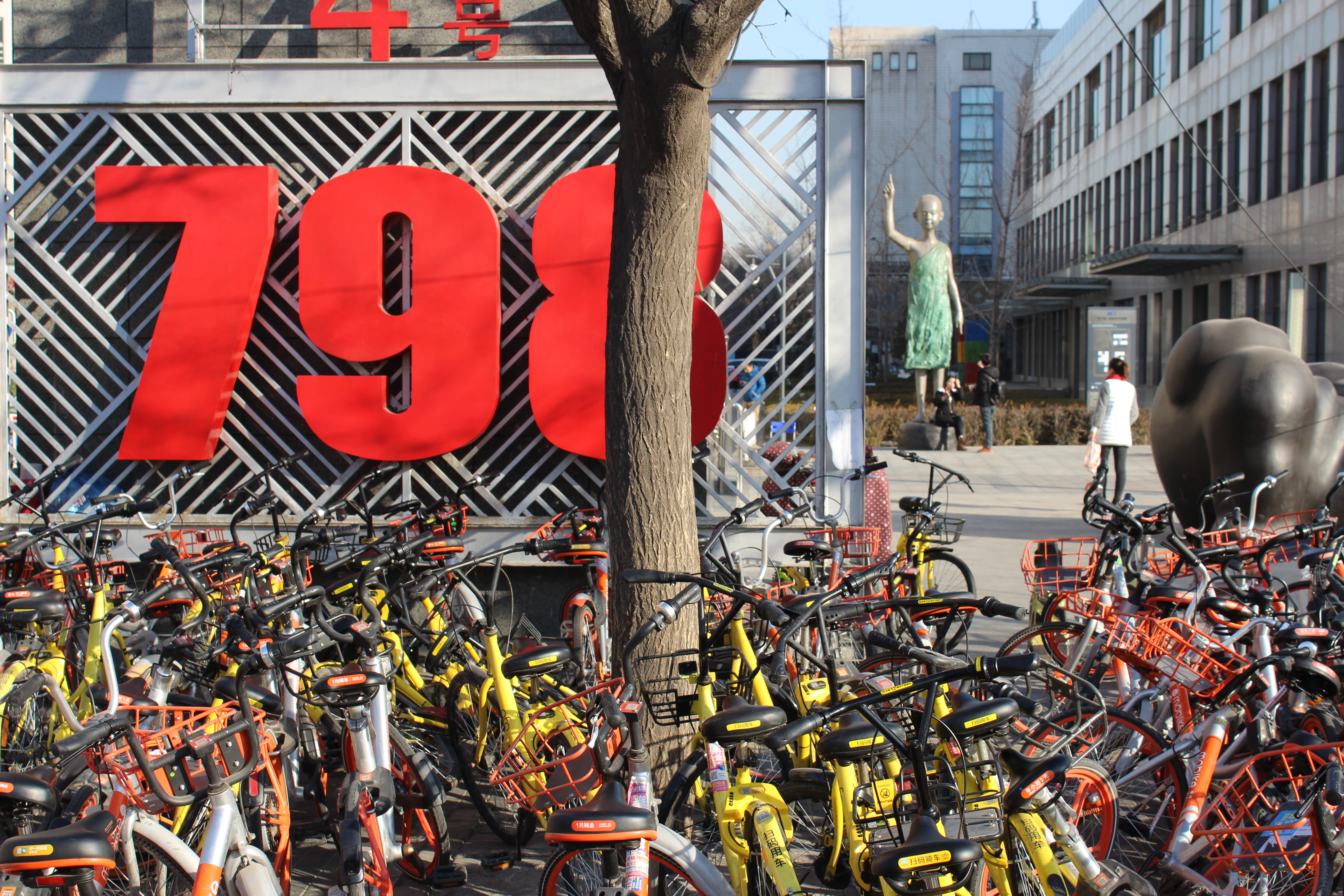 Rental bikes are also now a presence in 798 and all of Beijing. December 9, 2017. Photograph by Jason Baird Jackson.