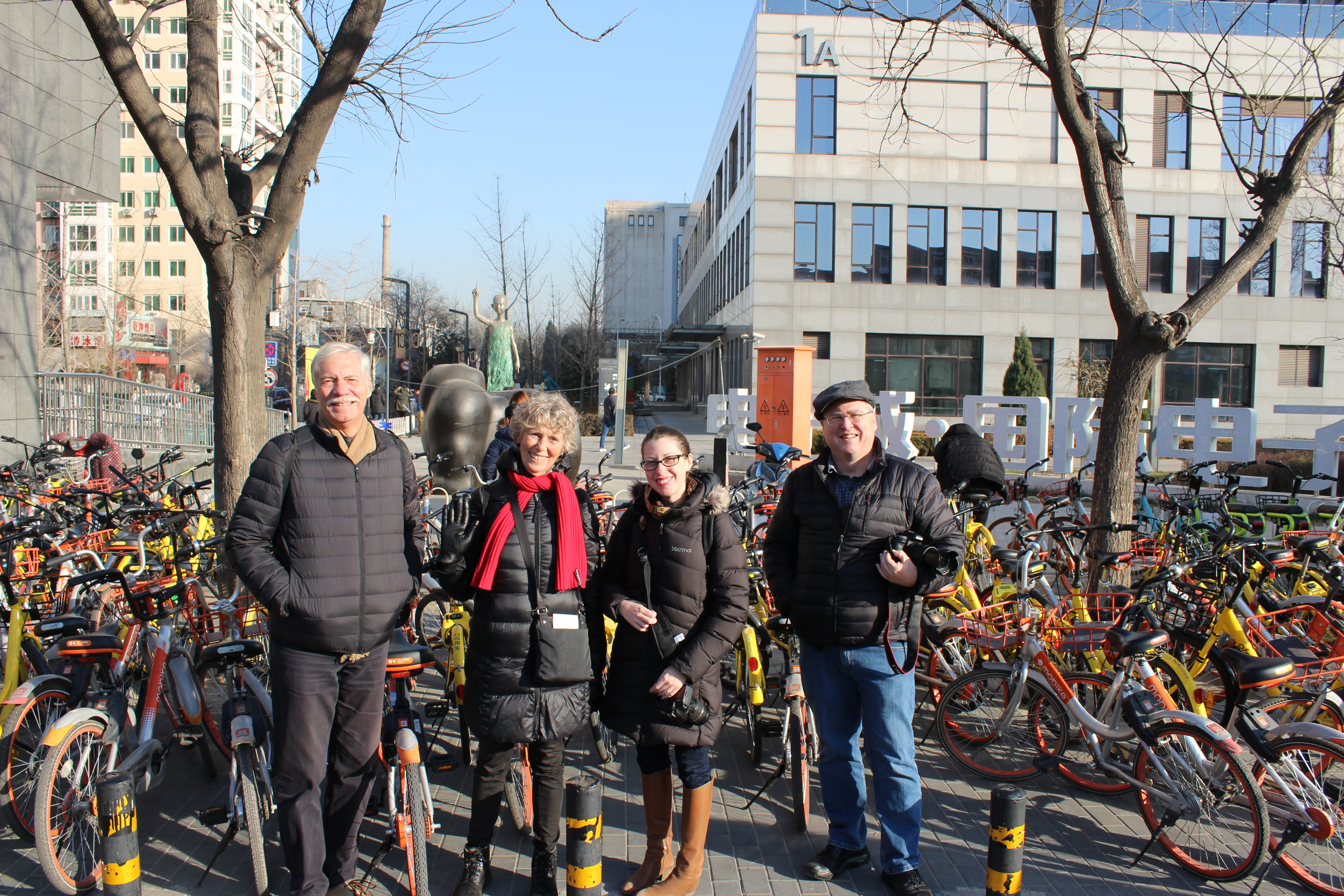(L-R) Kurt Dewhurst, Marsha MacDowell, Carrie Hertz, and Jon Kay outside 798. December 9, 2017. Photograph by Jason Baird Jackson.