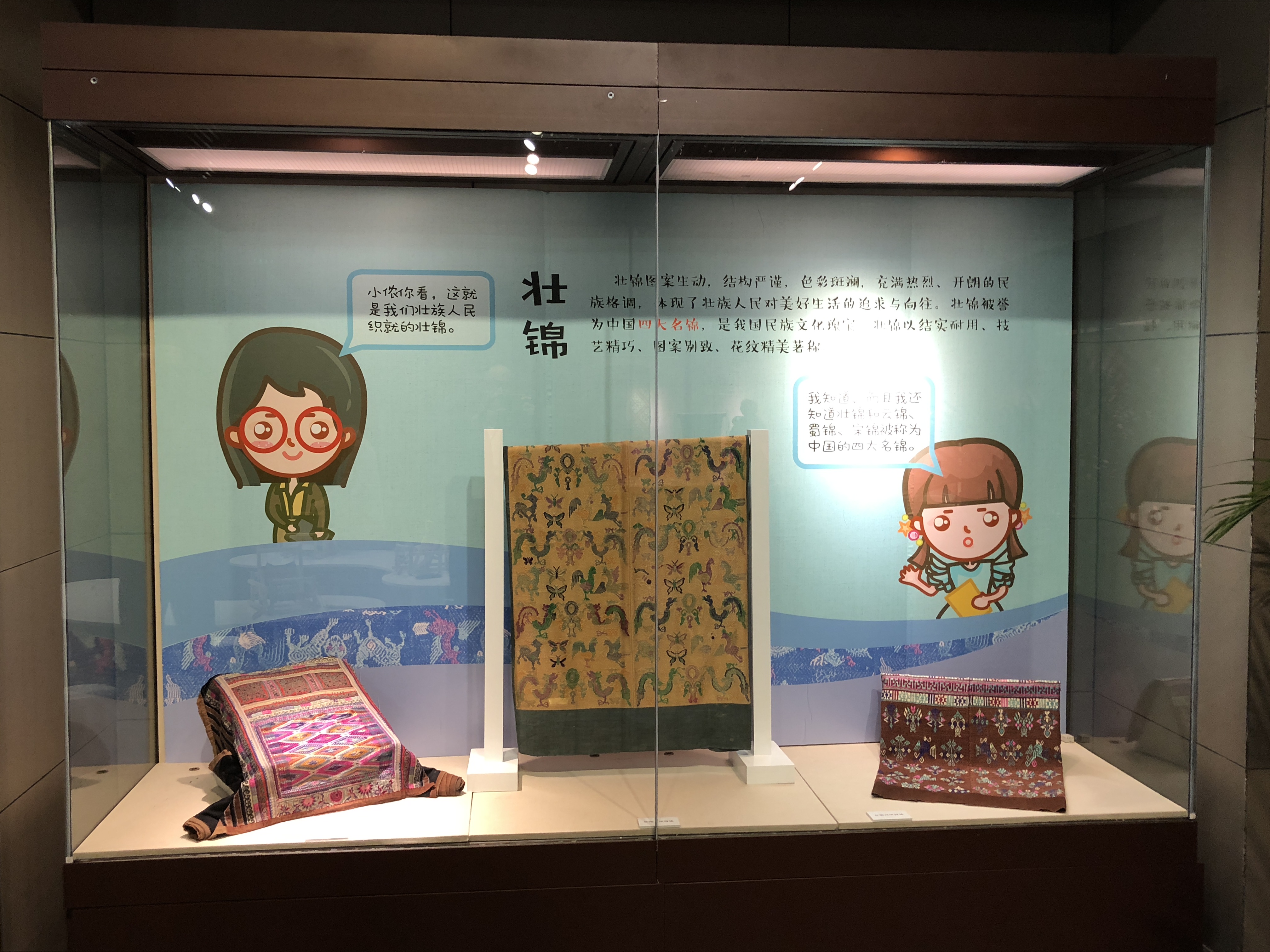Scenes from the temporary children’s exhibition “Brocade Made by Minority Nationalities in China.” December 12, 2017. Photograph by Jason Baird Jackson.