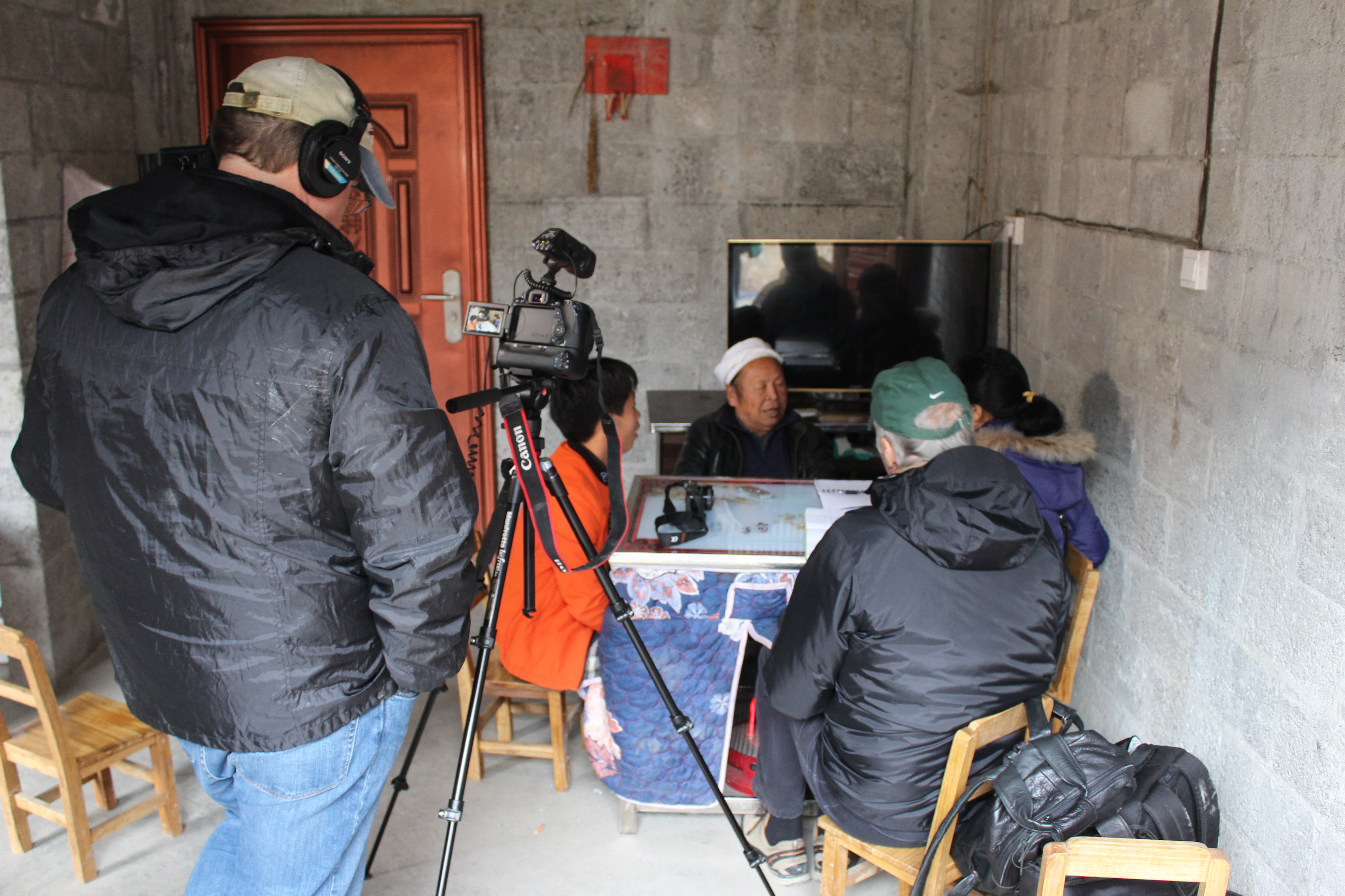 Jon Kay records the interview with basketmaker Li Guicai. December 15, 2017. Photograph by Jason Baird Jackson.