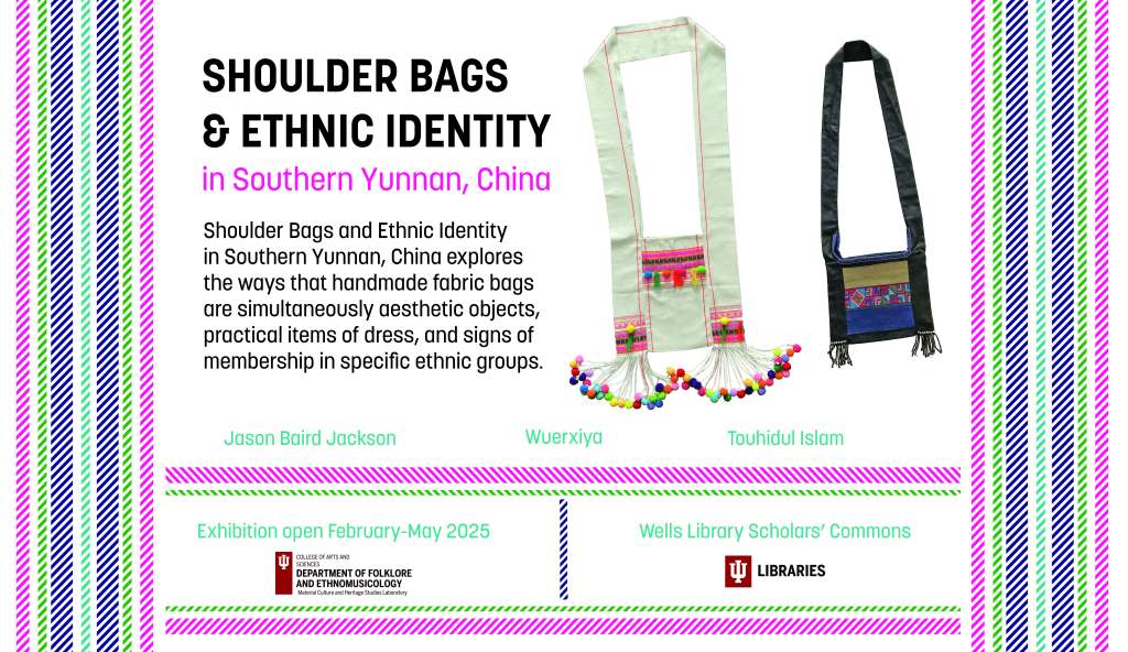 The exhibition is now open in the Scholars’ Commons at the Wells Library on the Indiana University Bloomington campus. The exhibition presents a purchased collection made by Wuerxiya and I in Xishuangbanna Dai Autonomous Prefecture and Pu’er Prefecture-Level City in Southern Yunnan, China during December 2023. Learn more about the exhibition at: https://libraries.indiana.edu/shoulder-bags-ethnic-identity-southern