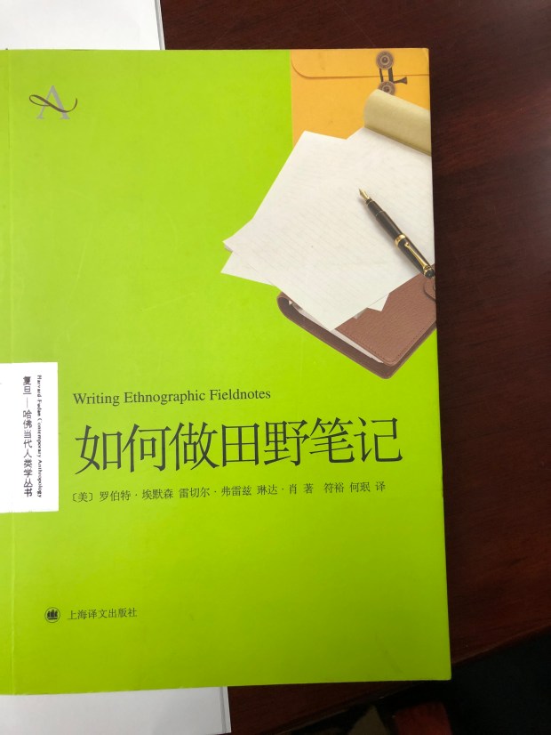 A copy of the Chinese edition of Writing Ethnographic Fieldnotes attended the Workshop on Ethnographic Methods in Museum Folklore and Ethnology held at the Anthropological Museum of Guangxi, Nanning. December 11, 2017. Photograph by Jason Baird Jackson.