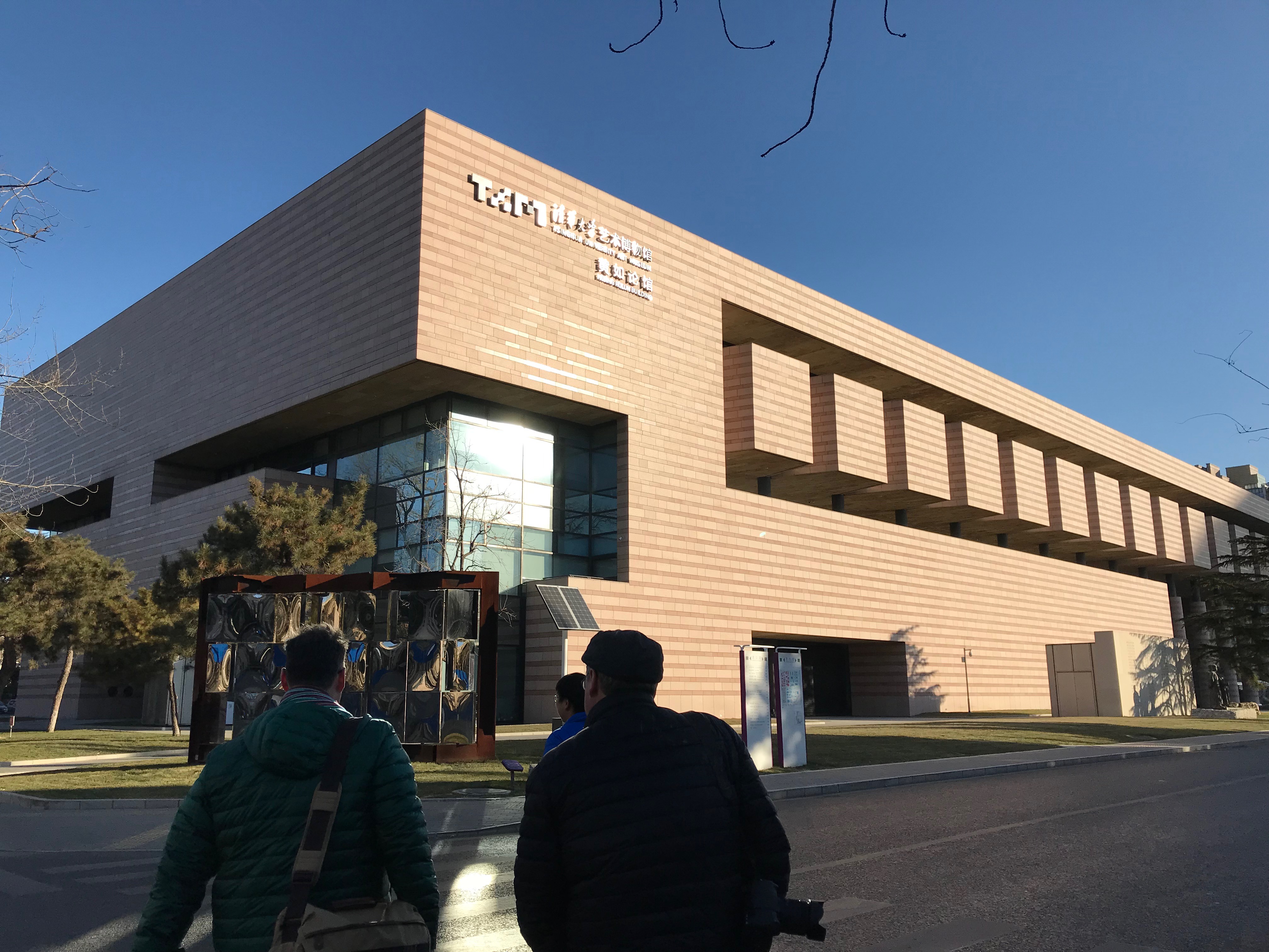 (L-R) Jason Jackson and Jon Kay get their first glimpse of the Tsinghua University Art Museum (TAM), Beijing, China. December 8, 2017. Photograph by Carrie Hertz.